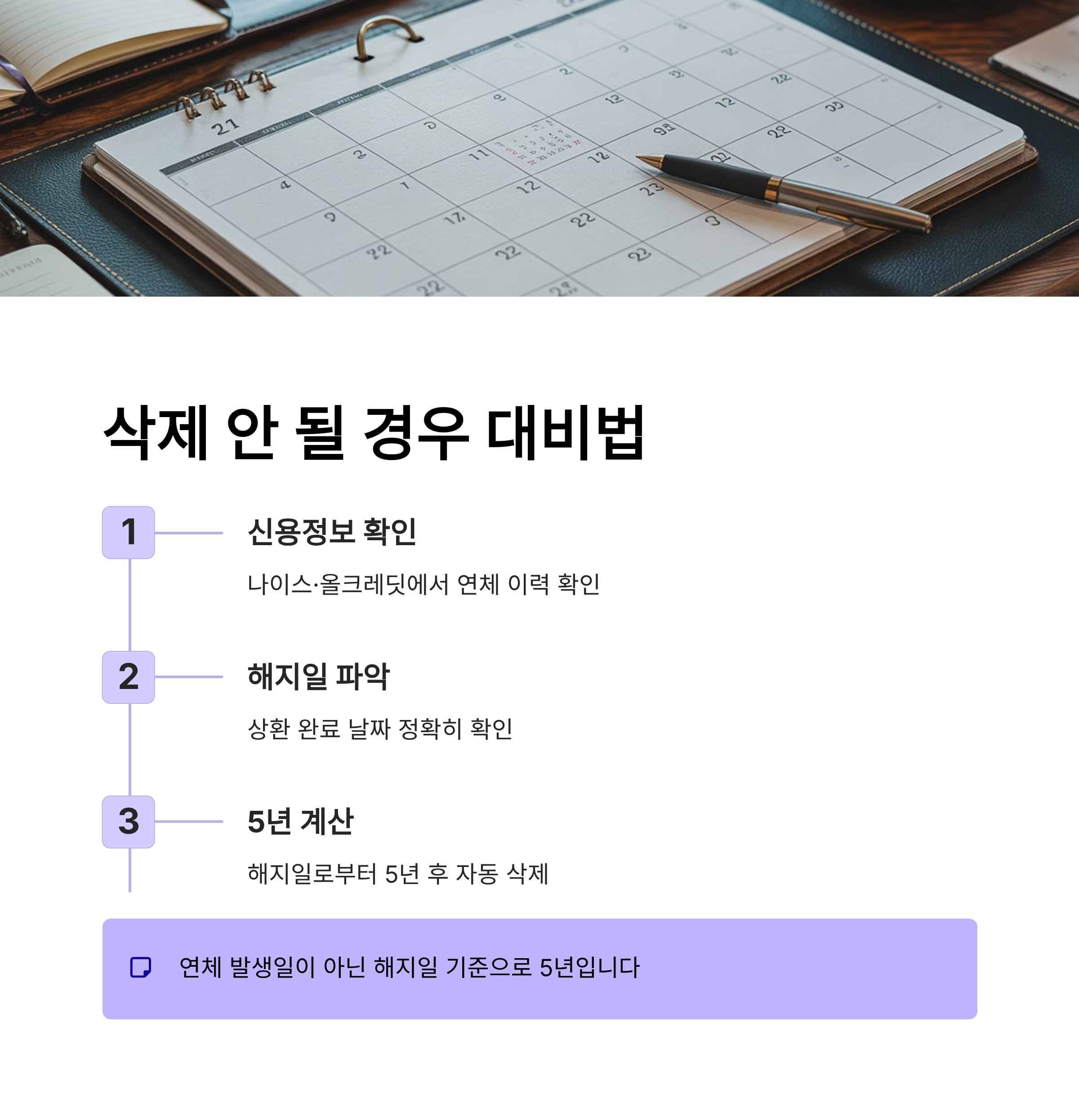 - 5년 계산: 이 해지 날짜로부터 5년이 되는 시점이 바로 장기연체기록이 완전히 삭제되는 시점입니다.