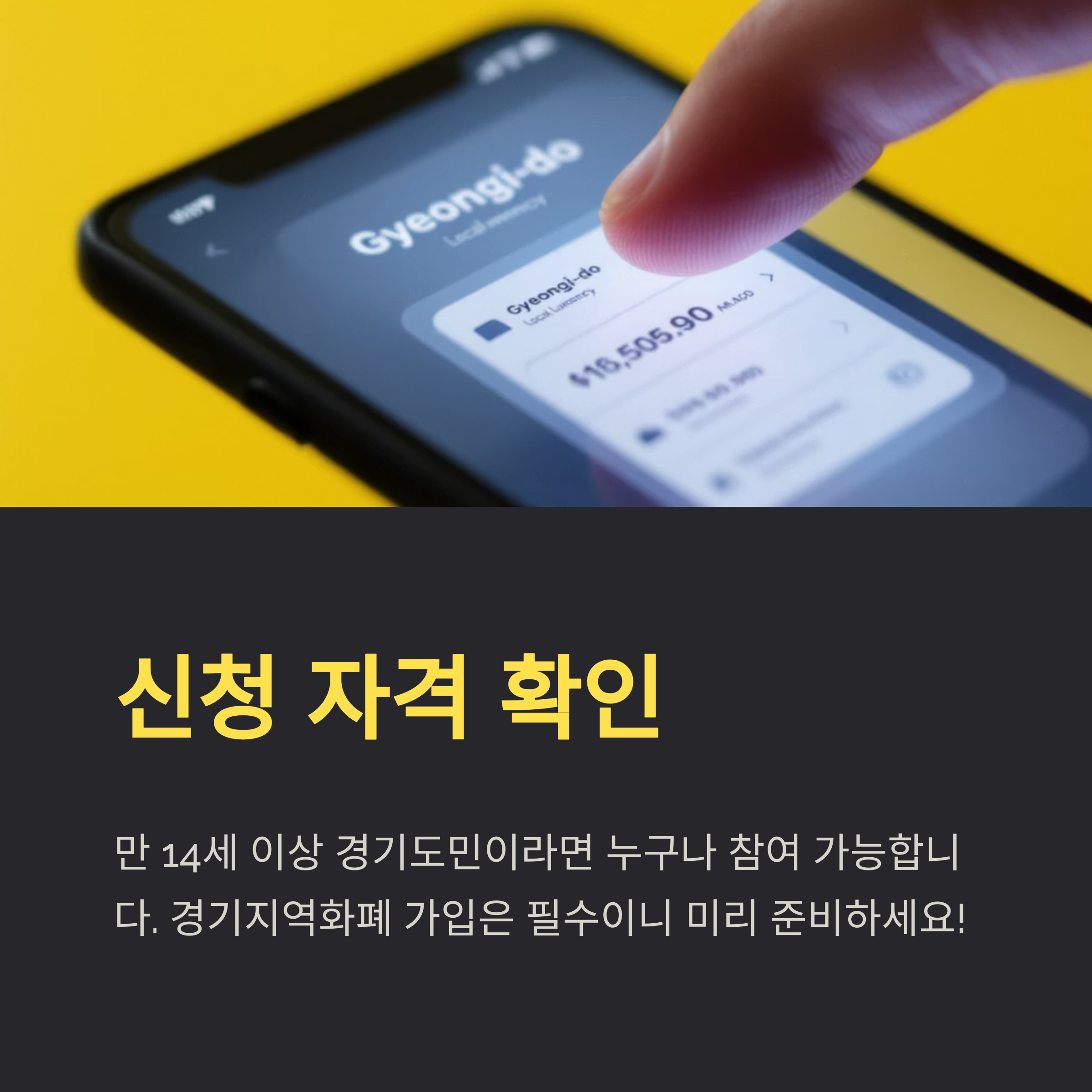 - 대상: 만 14세 이상 경기도민이며, 경기지역화폐 가입 필수(미가입 시 새로 생성 가능).