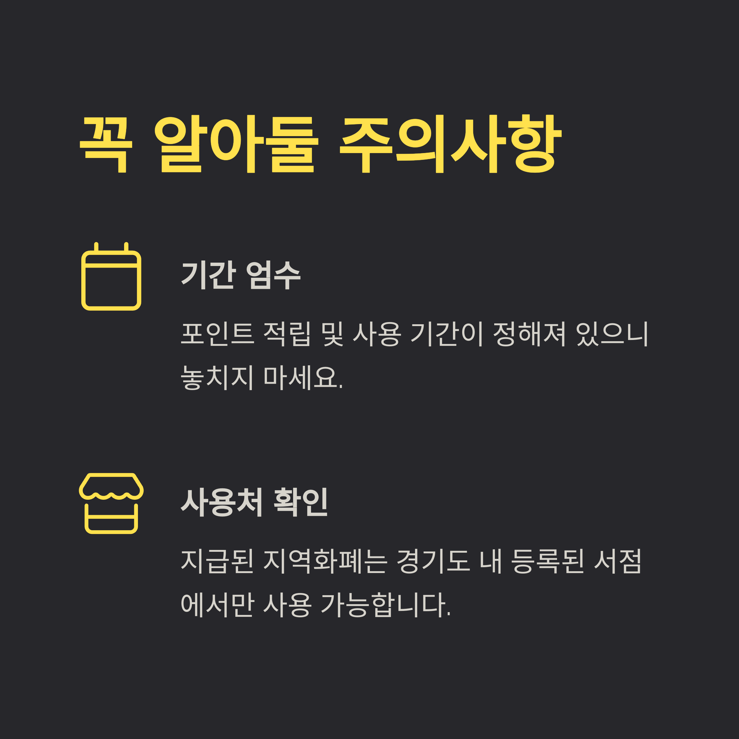 - 사용처 제한: 지역화폐는 경기도 내 서점에서만 도서 구매 가능(온라인·오프라인).