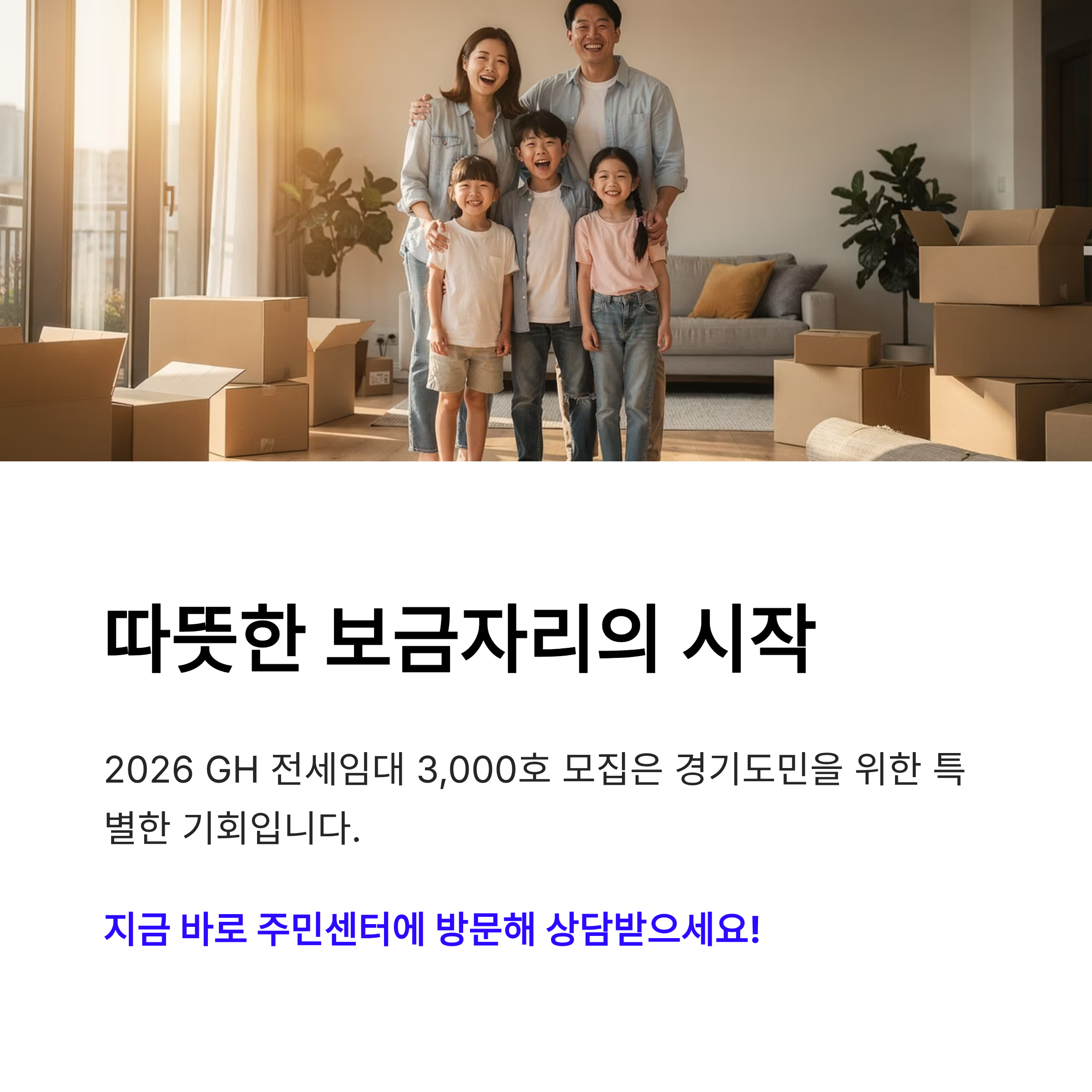 이번 2026 GH 기존주택 전세임대 3,000호 모집은 경기도민들에게 정말 단비 같은 소식입니다.