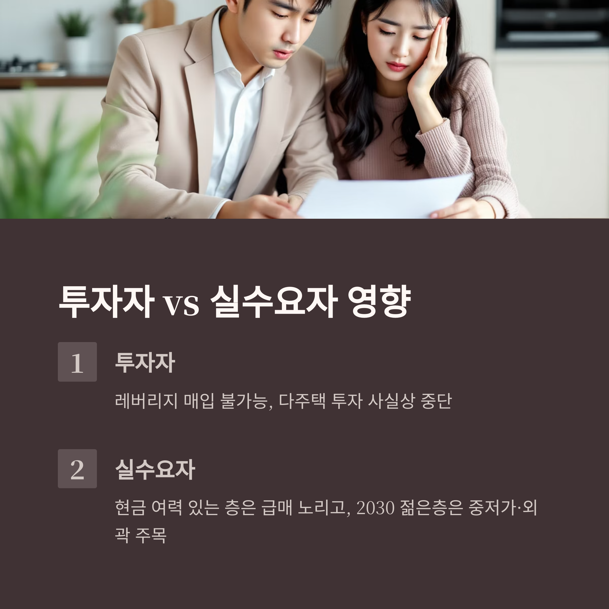 고가 주택에 대한 레버리지 매입이 불가능해지며, 다주택 투자 수요는 사실상 중단되었습니다. - 실수요 이동