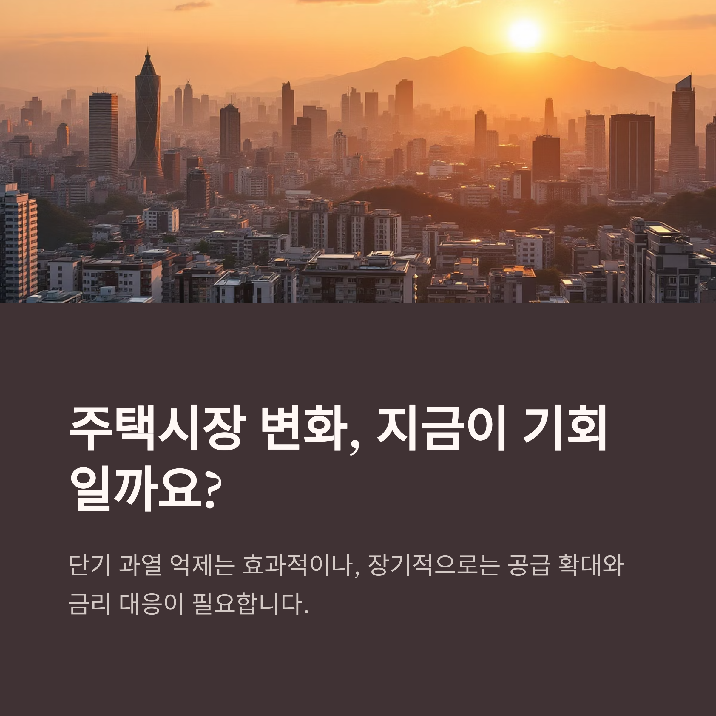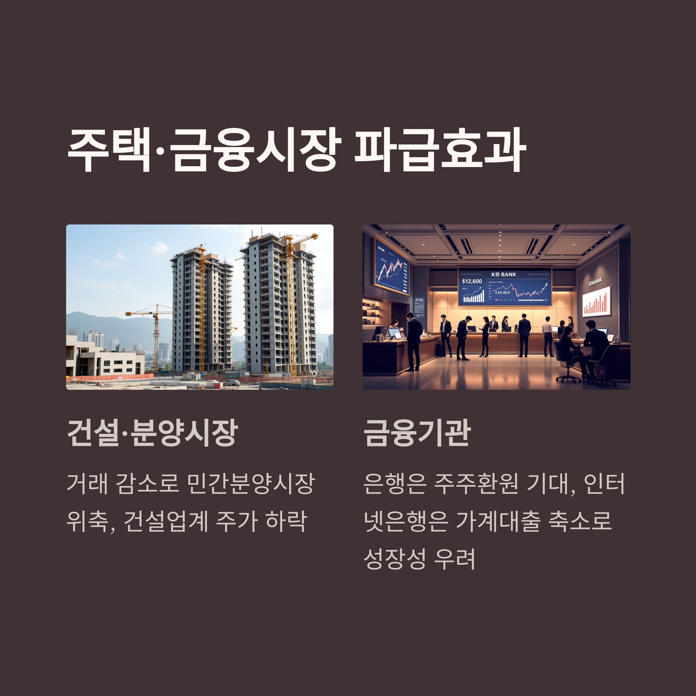 이번 금융당국의 강력한 대출규제는 고가 주택 시장을 빠르게 진정시키는 효과를 나타냈으며, 중저가·외곽 주택으로의 실수요 이동, 전세시장 구조 변화, 금융·건설 업종 영향이 동시에 전개되고 있습니다. 단기 안정이 예상되지만, 장기적으로는 공급 확대와 금리·제도 보완이 선행되어야 여파가 최소화될 것입니다.