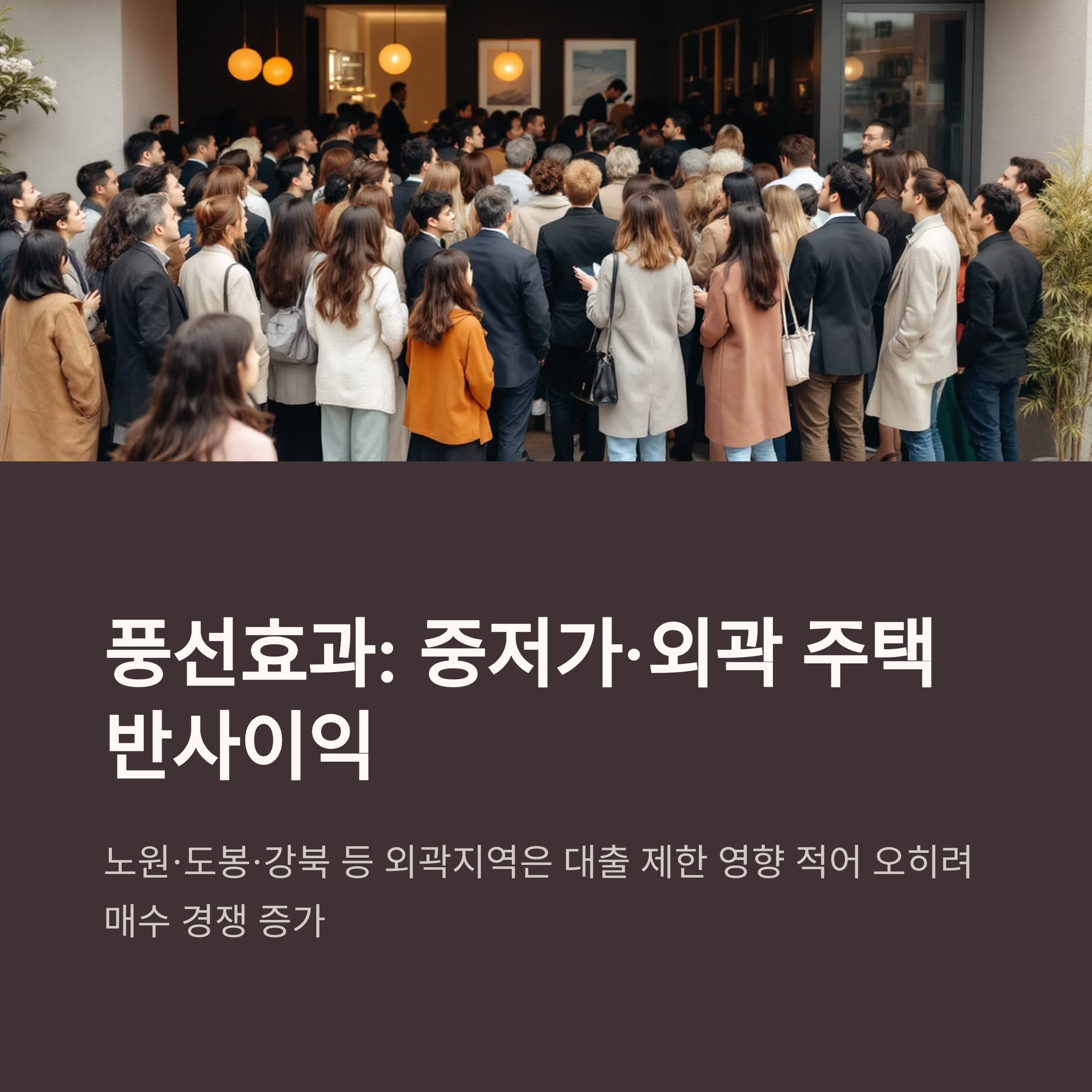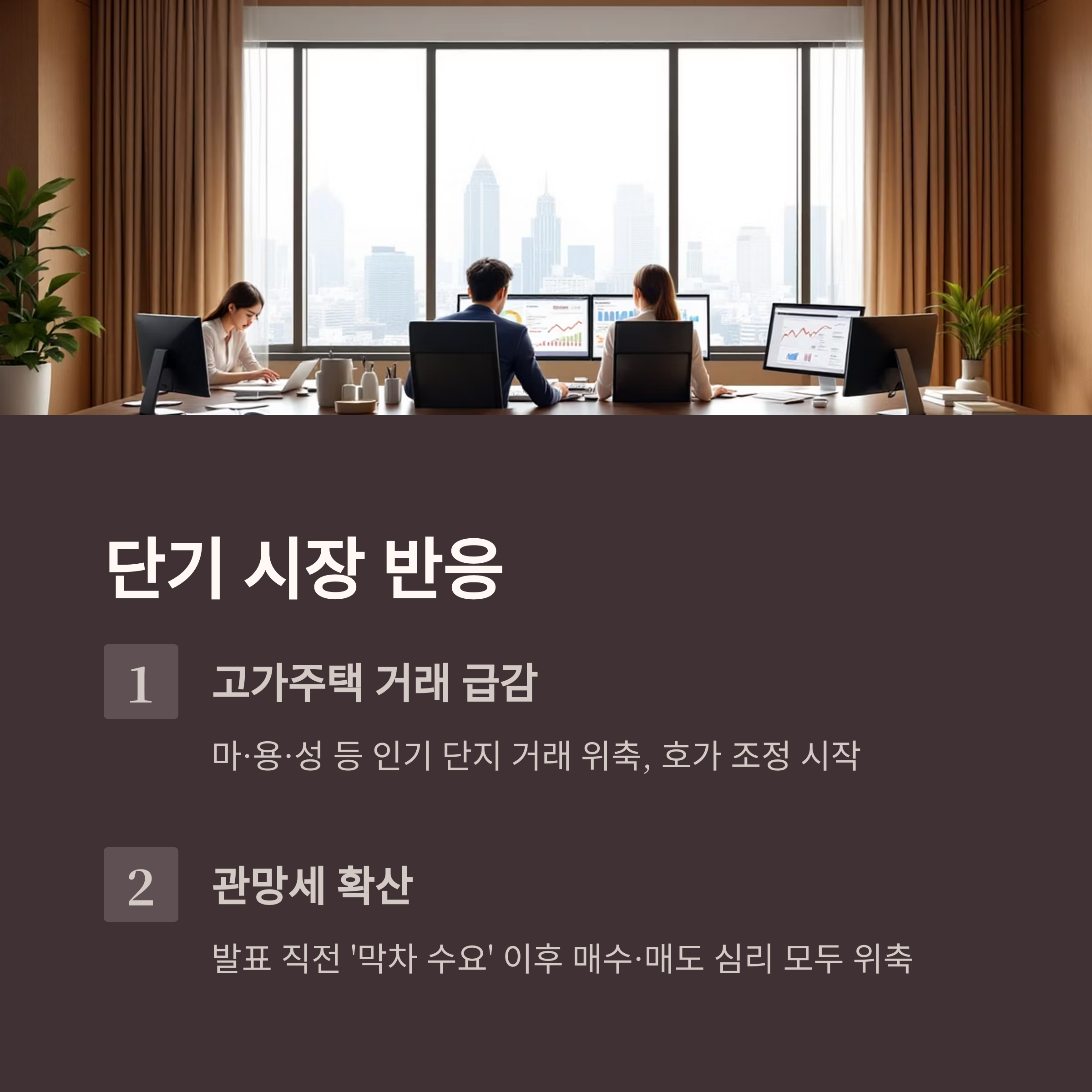 발표 직전 몰렸던 수요가 대거 감소했고, 매수·매도 심리가 모두 위축되었습니다. - 중저가·외곽 주택은 상대적 반사이익
