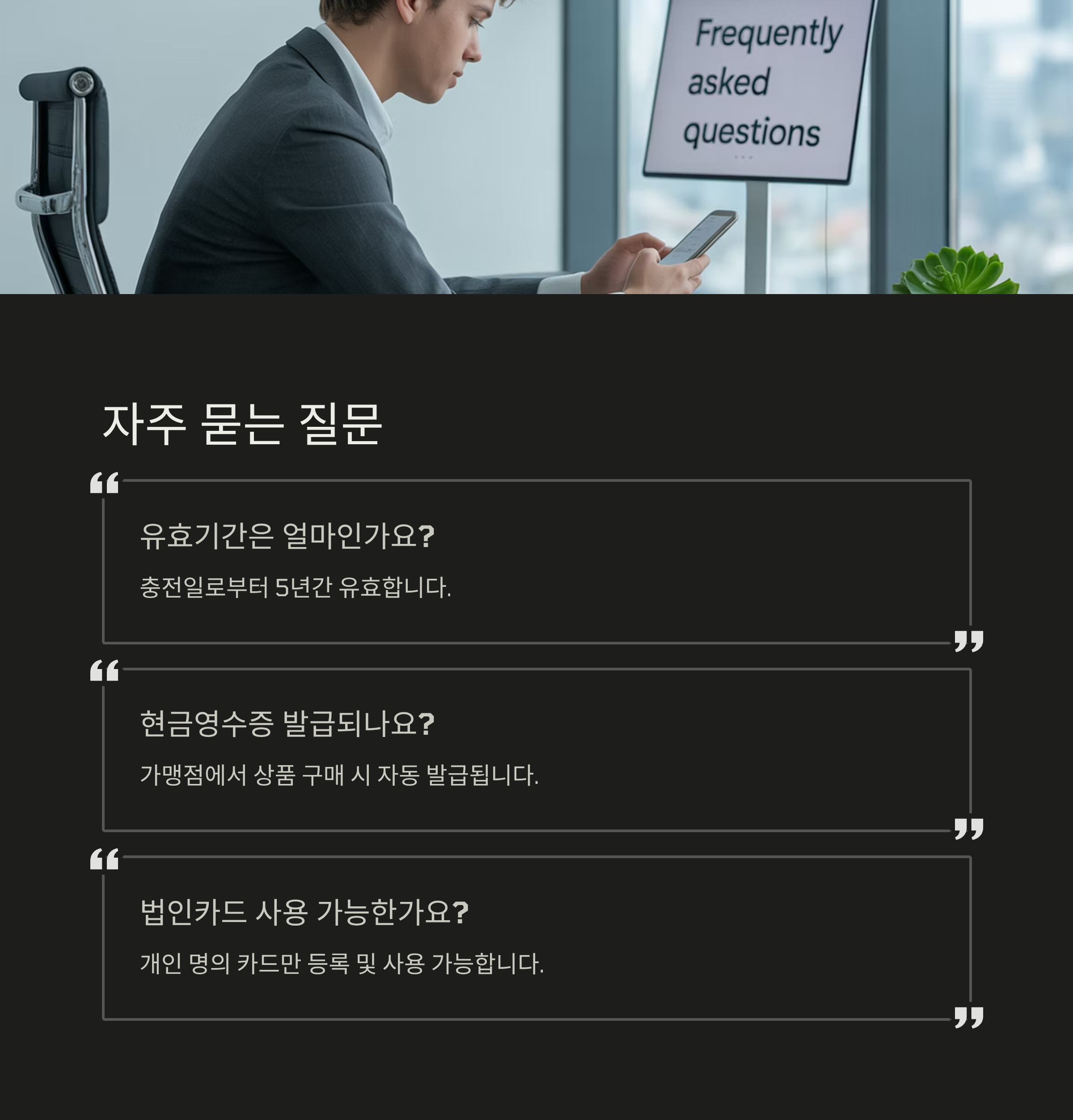 Q2. 충전한 상품권에 유효기간이 있나요? A. 사용자가 직접 충전한 금액은 충전일로부터 5년간 유효합니다. 다만, 이벤트 등으로 지급받은 금액은 유효기간이 다를 수 있으니 확인이 필요합니다.
