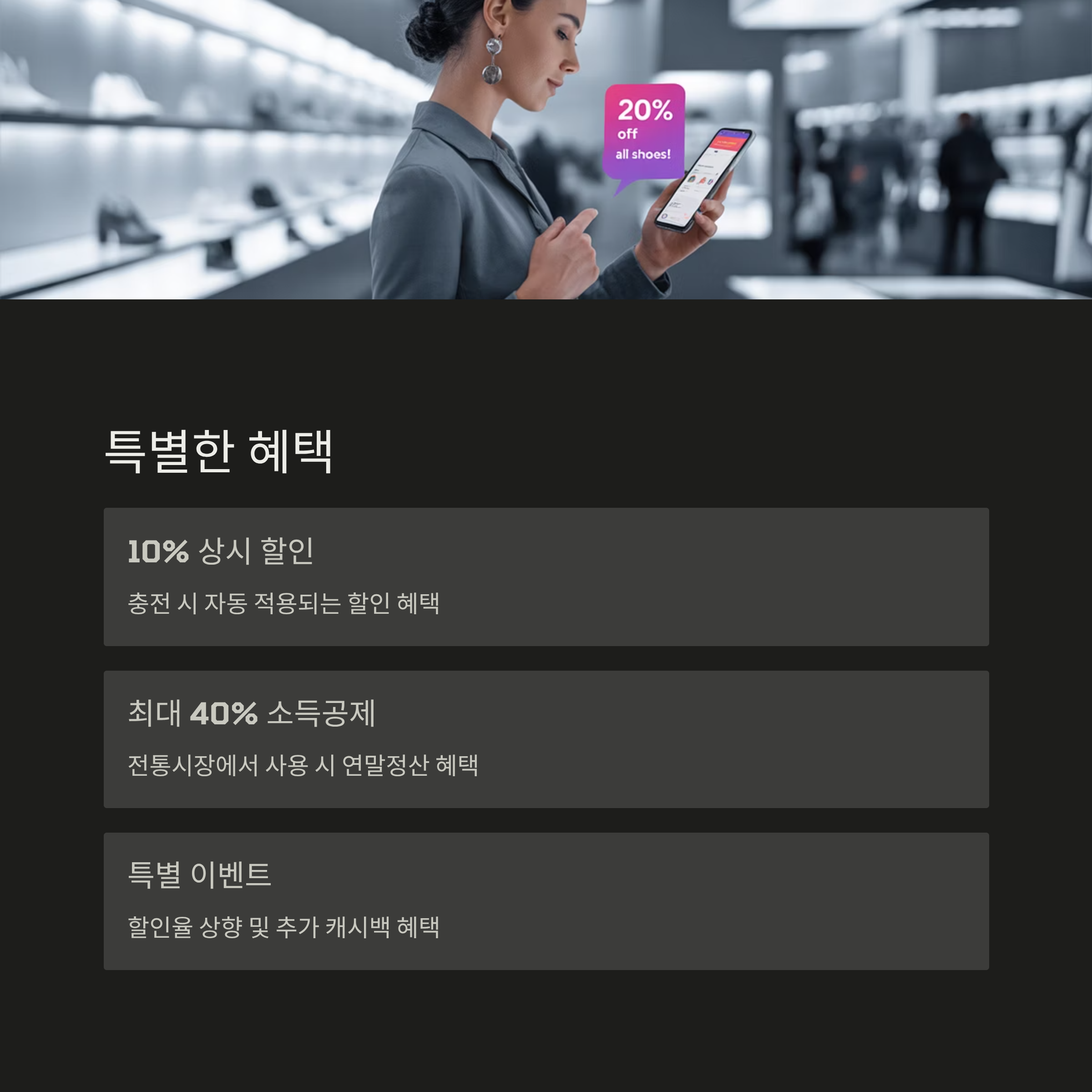 충전과 결제가 하나의 앱에서 이루어지니 잔액 관리도 쉽고, 언제 어디서든 스마트폰만 있다면 온누리상품권 가맹점에서 결제할 수 있습니다. 게다가 충전 시 10%의 상시 할인을 받을 수 있고, 전통시장에서 사용하면 연말정산 소득공제 혜택도 최대 40%까지 받을 수 있어 경제적으로도 큰 도움이 됩니다. 이 외에도 특별 판매 기간에는 할인율이 상향되거나 추가적인 캐시백 혜택을 주는 이벤트가 종종 진행되니, 놓치지 마세요.