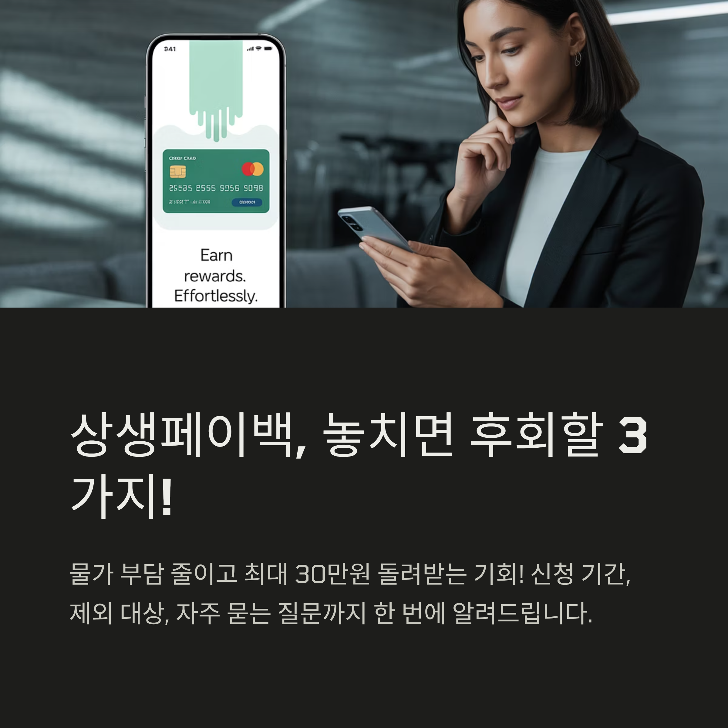 요즘 물가가 너무 올라서 소비하기 부담스러우셨죠? 그래서 정부가 소상공인과 소비자 모두에게 혜택을 주는 ‘상생페이백’ 사업을 시작합니다. 작년보다 카드 사용액이 늘어나면 최대 30만원까지 돌려받을 수 있는 기회인데요. 잘만 활용하면 똑똑한 소비생활을 할 수 있겠죠? 그런데 상생페이백을 신청하기 전에 꼭 알아야 할 내용들이 있습니다. 언제부터 신청할 수 있는지, 어떤 소비가 제외되는지, 궁금증이 많으실 텐데요. 오늘 이 글 하나로 상생페이백의 모든 것을 속 시원하게 알려드릴게요!