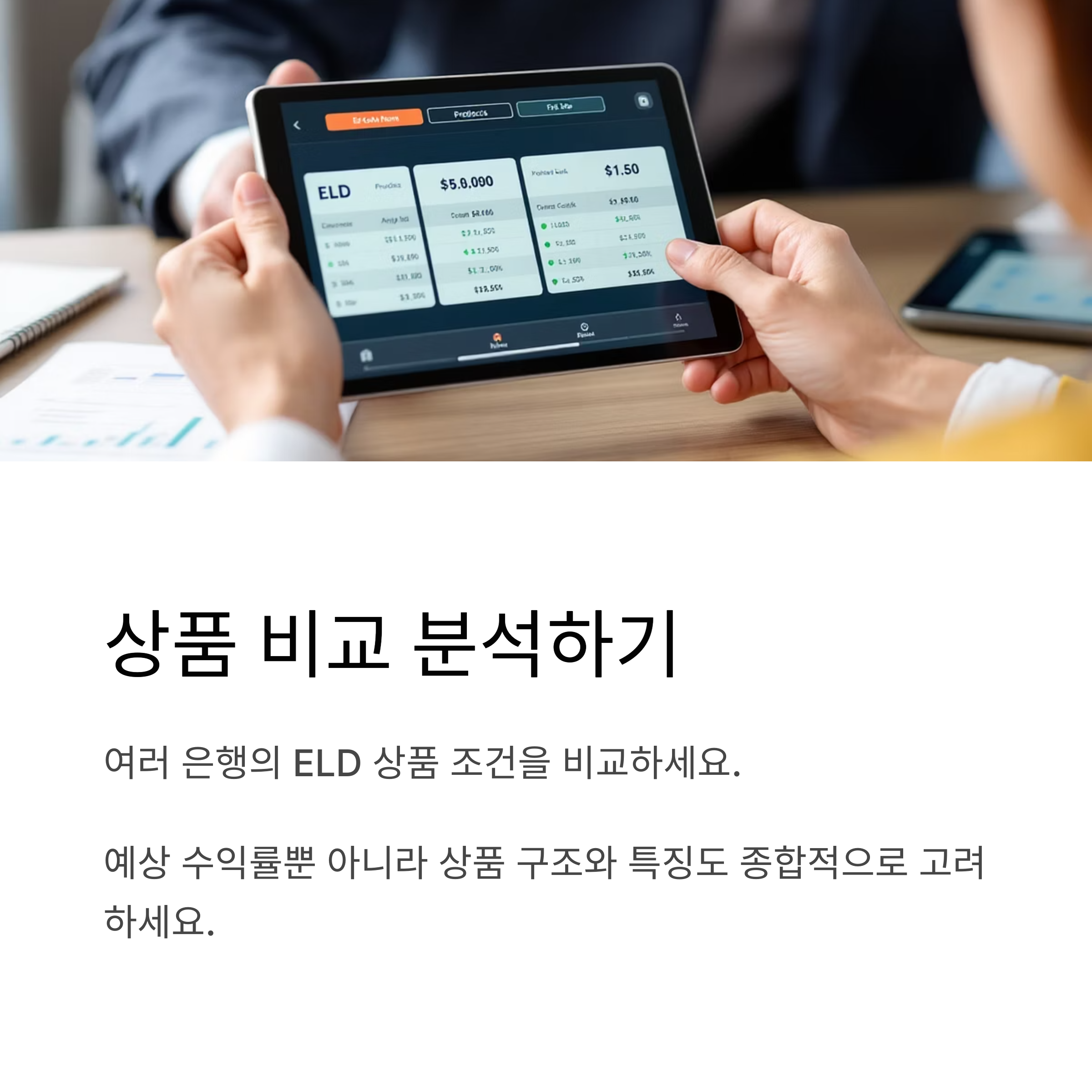 여러 은행에서 제공하는 ELD 상품의 조건을 비교 분석하여 자신에게 가장 유리한 상품을 선택하는 것이 좋습니다. 예상 수익률뿐만 아니라, 상품의 구조와 특징을 종합적으로 고려해야 합니다.