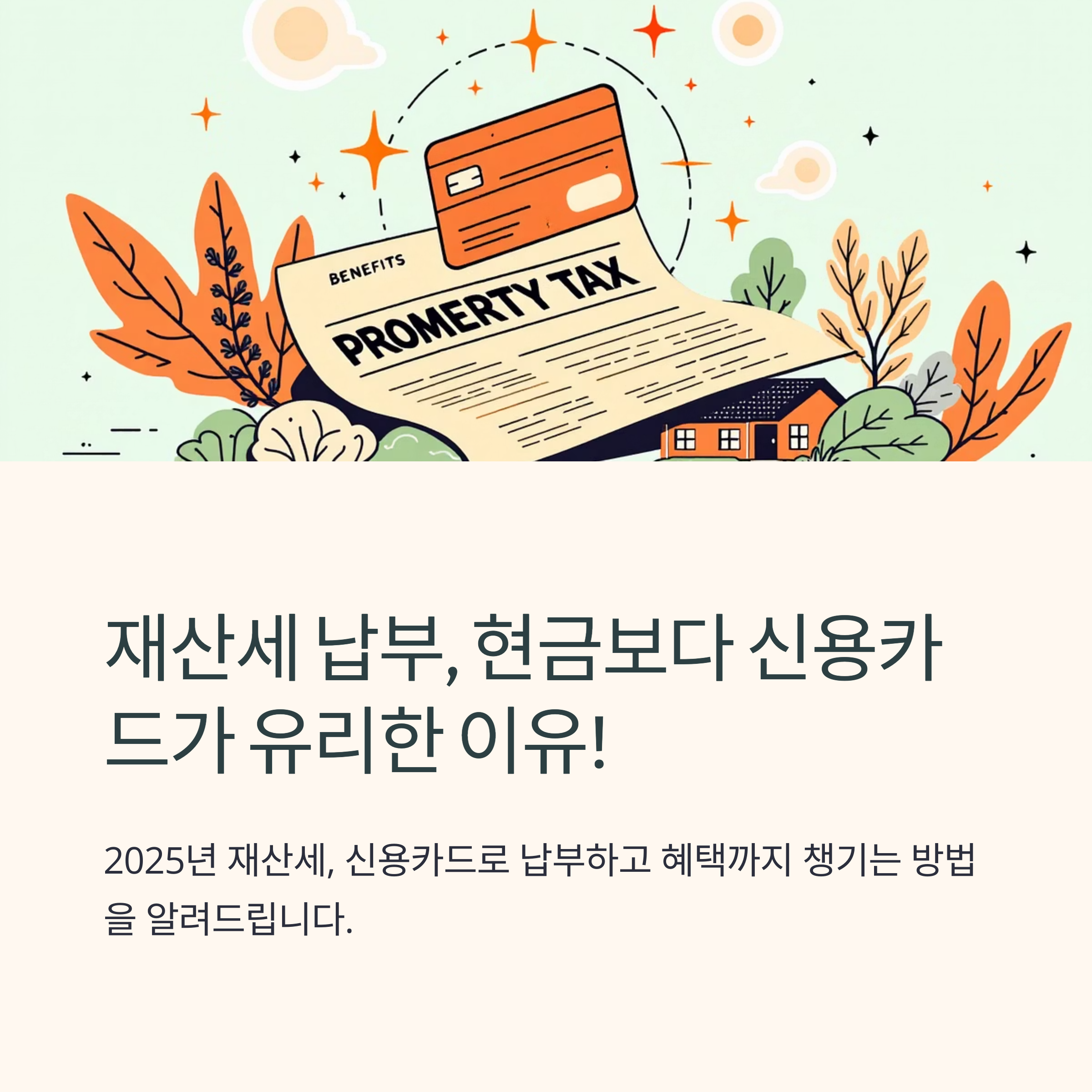 매년 찾아오는 7월, 주택과 건축물 소유자들에게는 조금은 부담스러울 수 있는 재산세 납부의 달이죠. 혹시 "이번에도 그냥 현금으로 내야 하나?" 하고 고민하고 계신가요? 더 이상 그렇게 하지 마세요! 2025년에는 신용카드를 활용해서 재산세를 납부하고 쏠쏠한 혜택까지 챙겨갈 수 있는 기회가 많답니다. 똑똑한 납세자라면 놓쳐서는 안 될 재산세 카드 납부 꿀팁, 지금부터 자세히 알려드릴게요!
