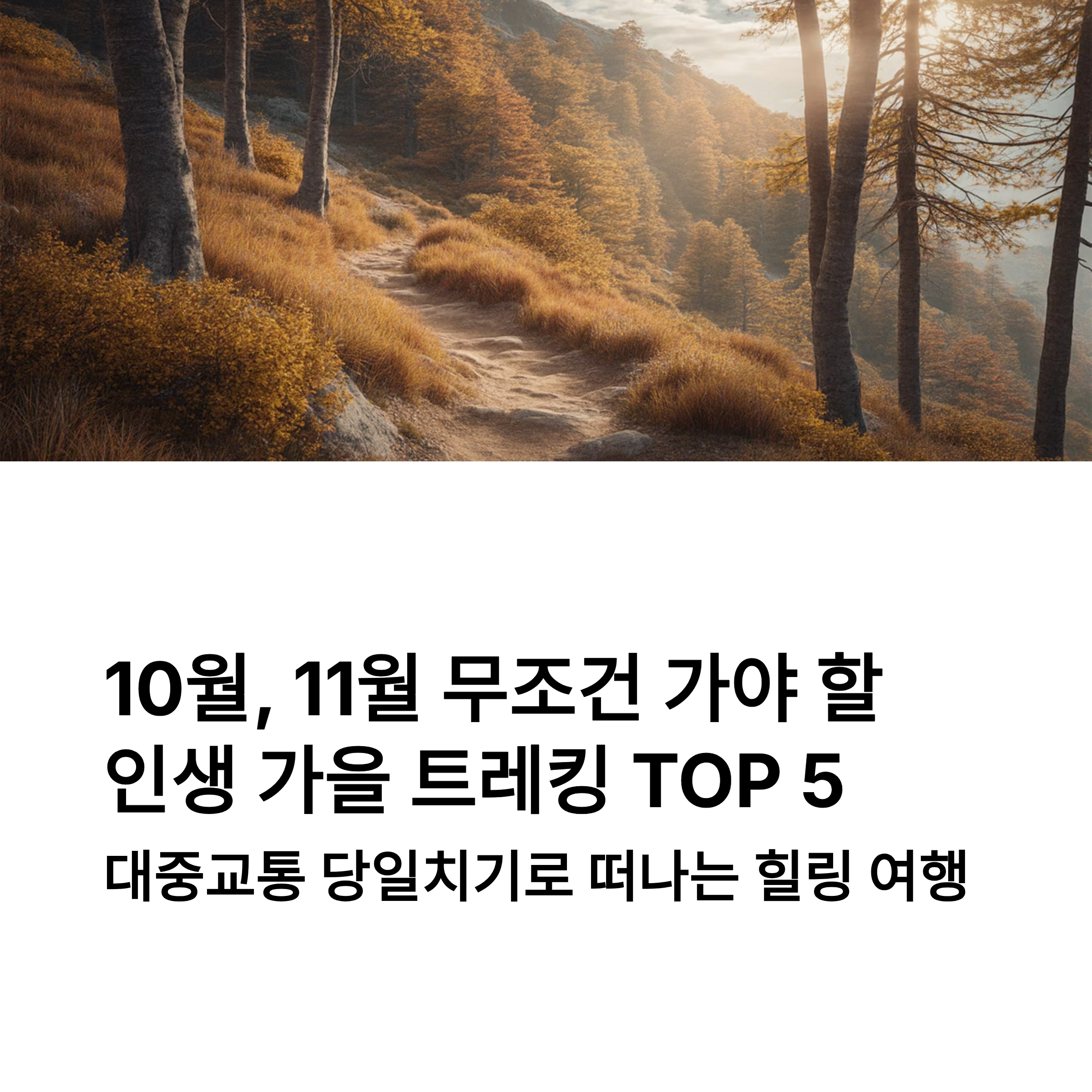 제가 최근 2년간 다닌 곳 중 최고라고 자신 있게 추천하는 가을 트레킹 명소 TOP 5를 소개해 드렸습니다. 멀리 해외로 나가지 않아도, 대중교통만으로도 충분히 이국적인 풍경과 압도적인 대자연을 경험할 수 있습니다.