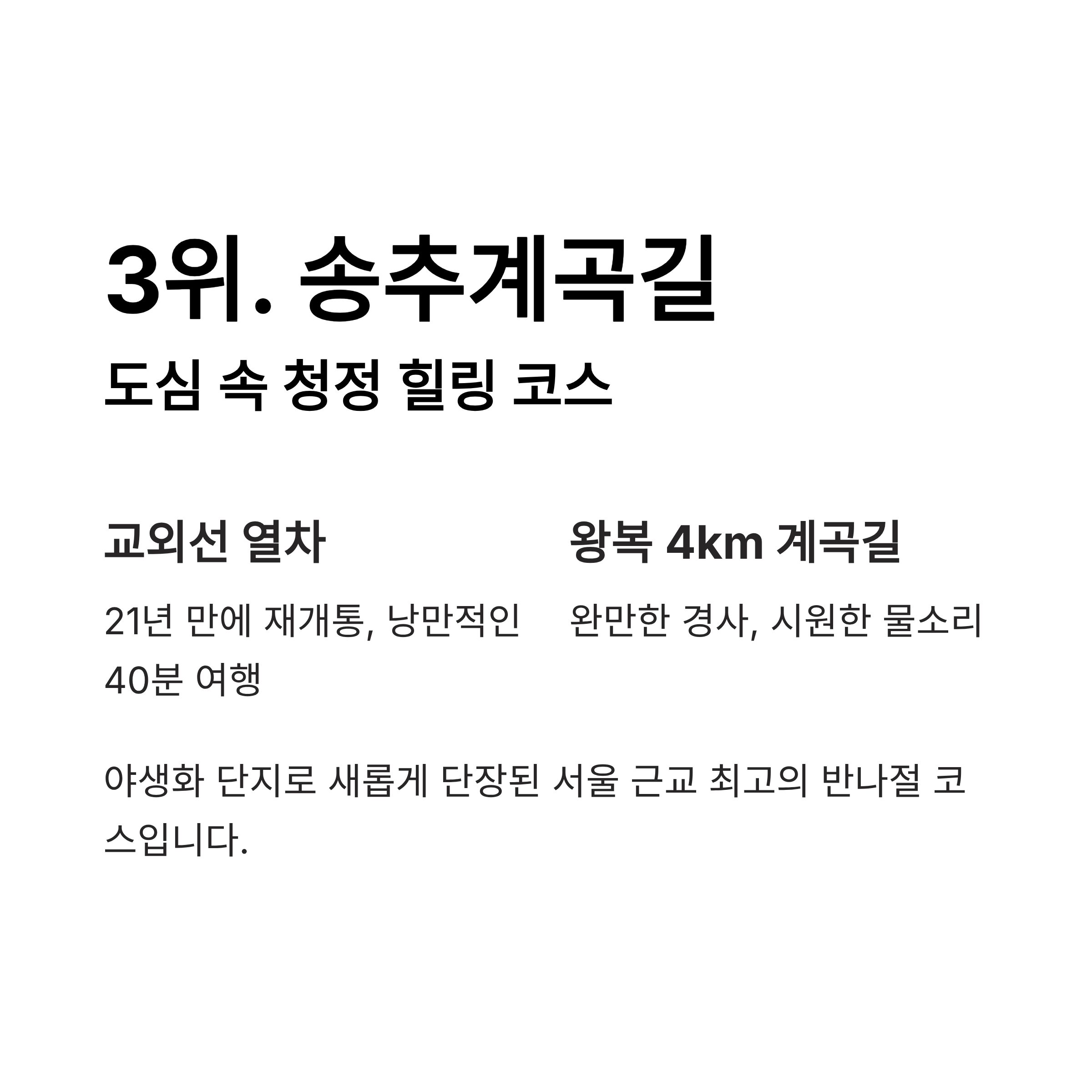 3. 도심 속 힐링 코스! 추억의 교외선 타고 떠나는 청정 계곡길 (3위. 송추계곡길)