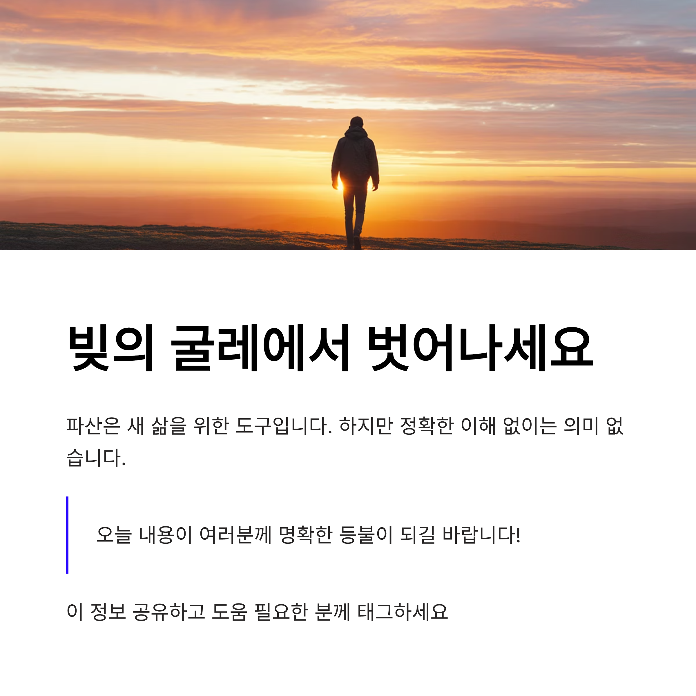 오늘 내용이 빚의 굴레에서 벗어나고자 하는 여러분께 명확한 등불이 되었기를 바랍니다!