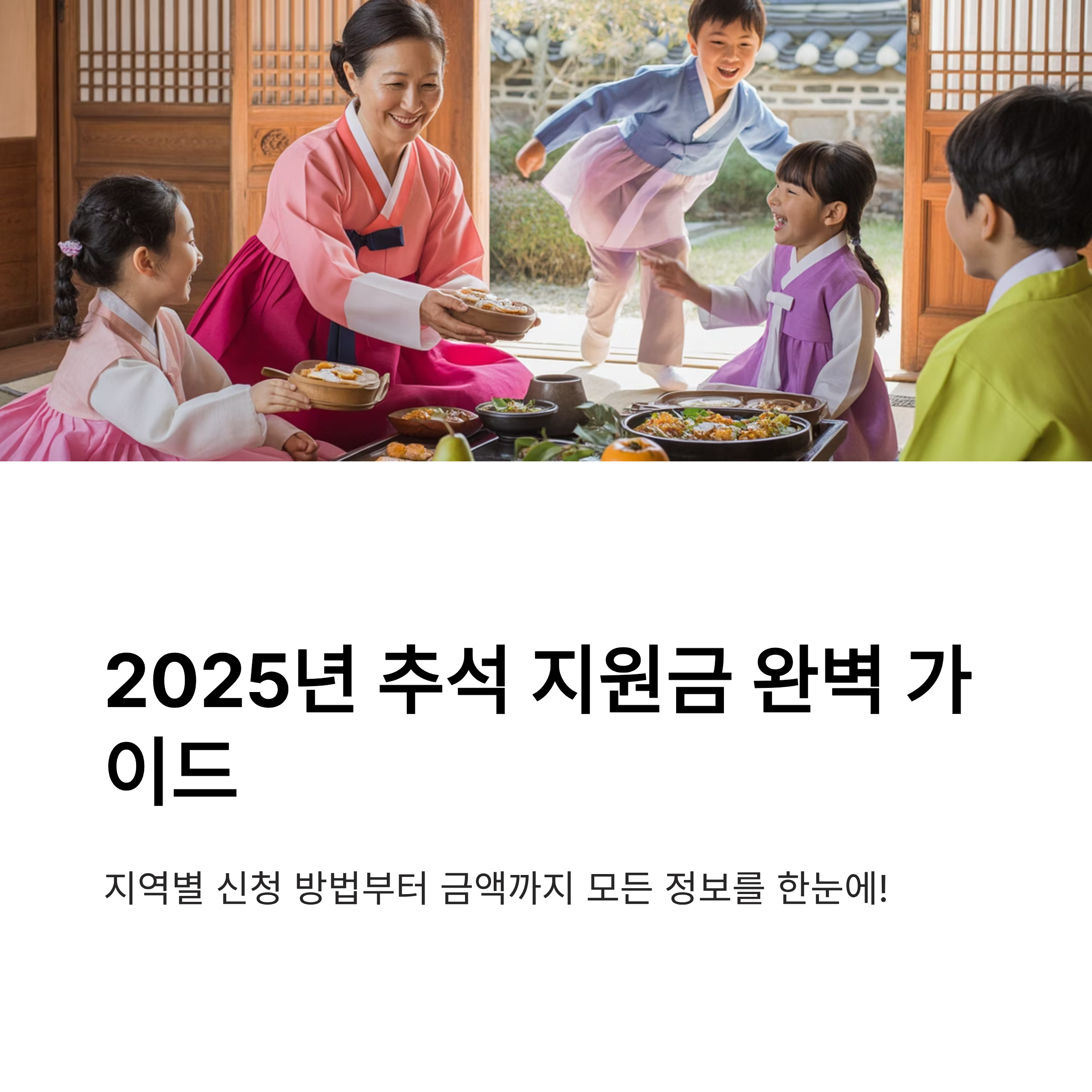 안녕하세요, 여러분! 민족 대명절인 추석이 다가오고 있습니다. 풍요롭고 즐거운 한가위를 보내기 위해 많은 분들이 다양한 지원금 정보를 찾고 계실 텐데요. 특히 경제적으로 어려운 시기일수록 명절을 앞두고 각종 지원금이 큰 힘이 되곤 합니다. 그래서 오늘은 2025년 추석을 맞아 정부와 각 지자체에서 제공하는 지역별 추석 지원금에 대한 모든 것을 꼼꼼히 정리해봤습니다.