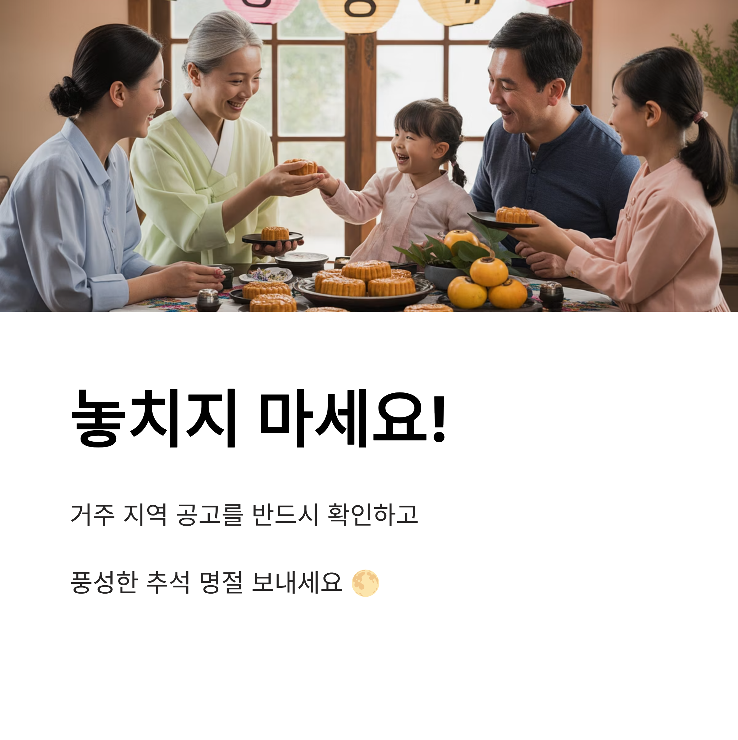 이렇게 2025년 지역별 추석 지원금에 대한 정보를 자세히 알려드렸습니다. 추석 명절을 앞두고 지급되는 다양한 지원금들을 잘 활용하셔서 풍성하고 행복한 한가위 보내시길 바랍니다.