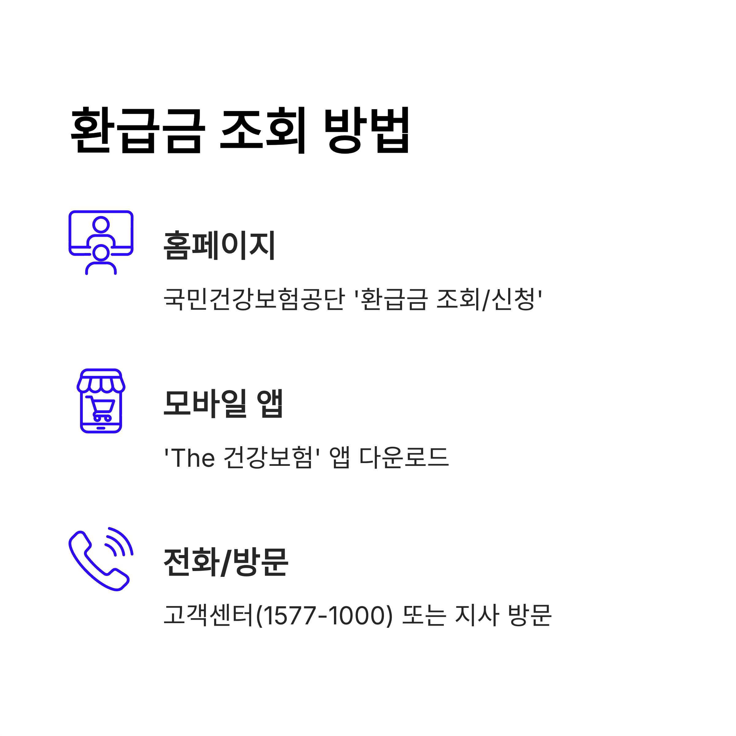 내 돈이 있는지 없는지 궁금하시죠? 건강보험료 환급금 조회는 생각보다 매우 간단합니다. 크게 세 가지 방법이 있습니다.