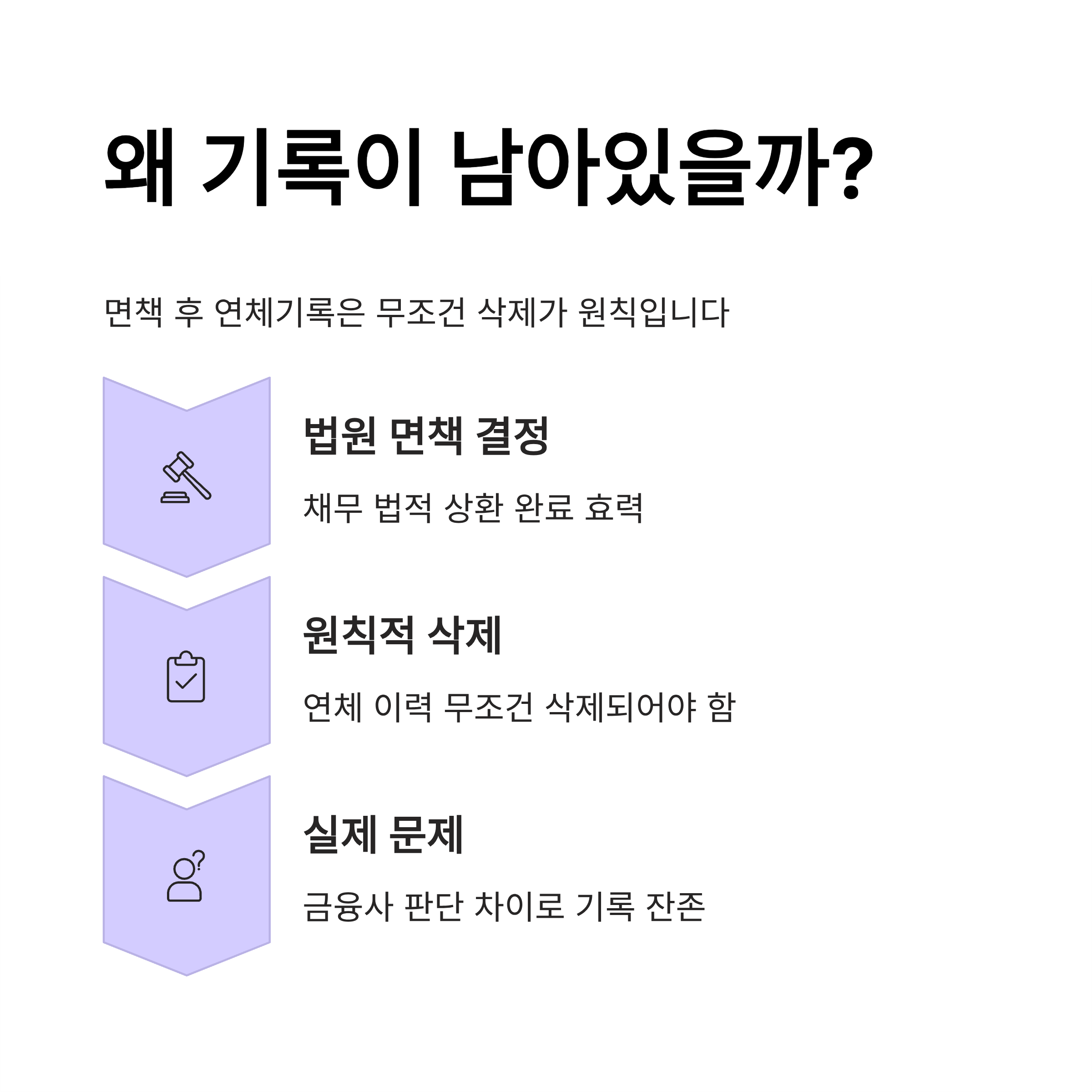 - 채무자 입장: 면책 결정이 났으니 모든 채무는 상환된 것이고, 기록은 삭제되어야 한다고 생각합니다.