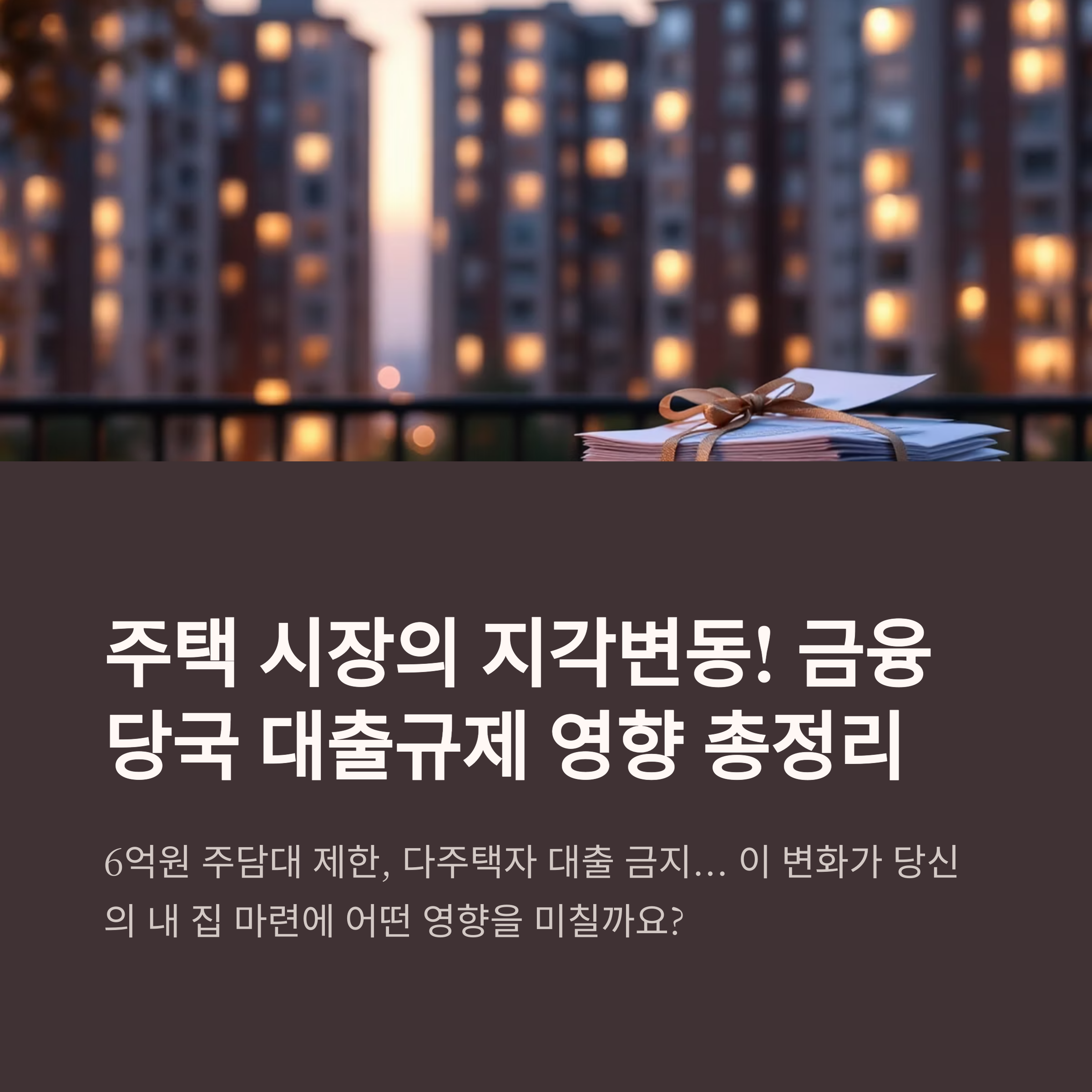 금융당국의 6억원 주담대 제한·다주택자 전면대출 금지 등 초고강도 조치가 도입되면서, 고가 주택 중심으로 거래 위축과 가격 조정이 시작되고 있습니다. 이번 글에서 그 영향과 대응 전략을 자세히 풀어봅니다.