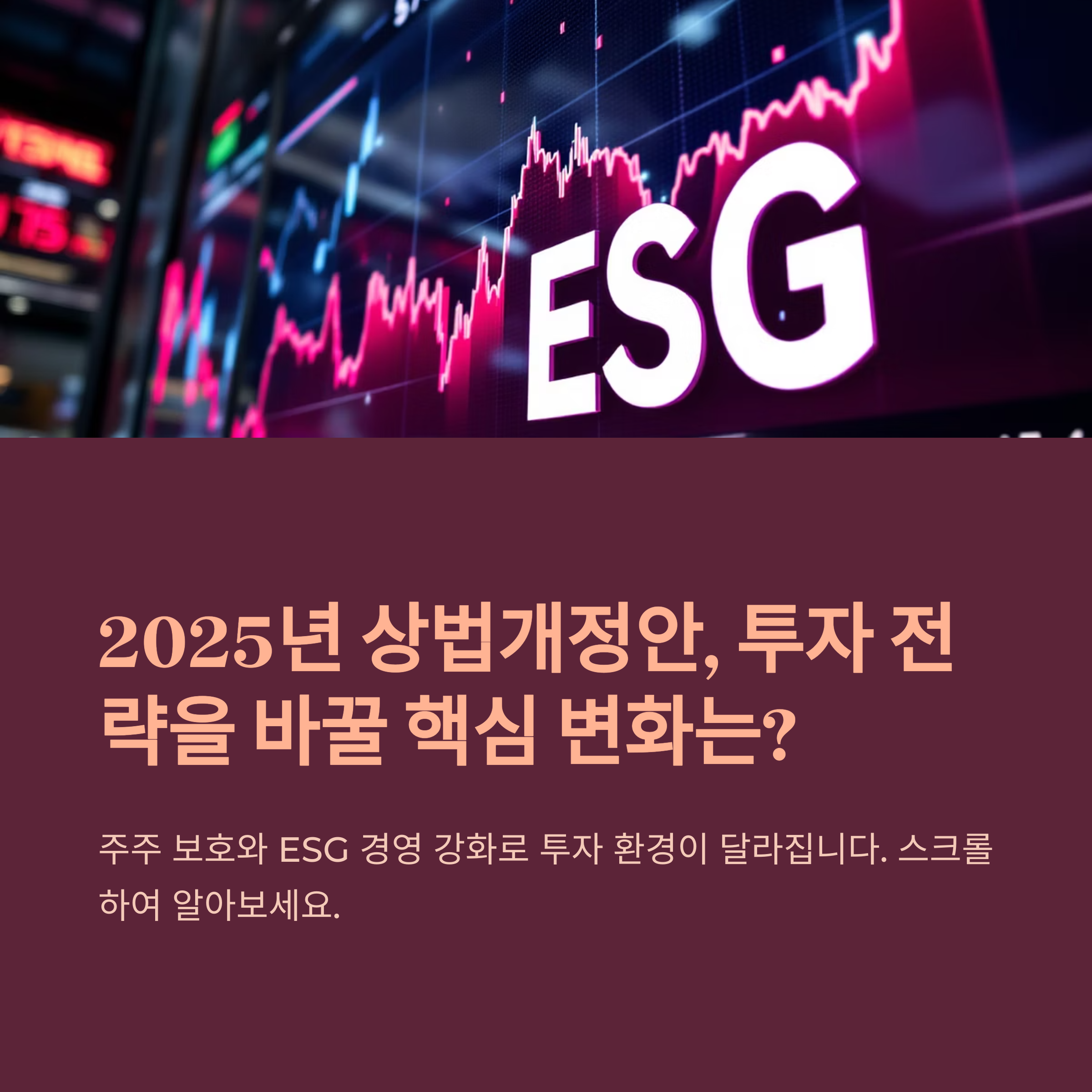 2025년 상법개정안은 한국 자본시장과 기업 경영의 패러다임을 바꾸는 중요한 전환점입니다. 주주 권익 보호, 기업 투명성 강화, ESG 경영 실질화 등 긍정적 효과가 기대되며, 기업과 투자자 모두 변화에 적극적으로 대응해야 할 시기입니다.