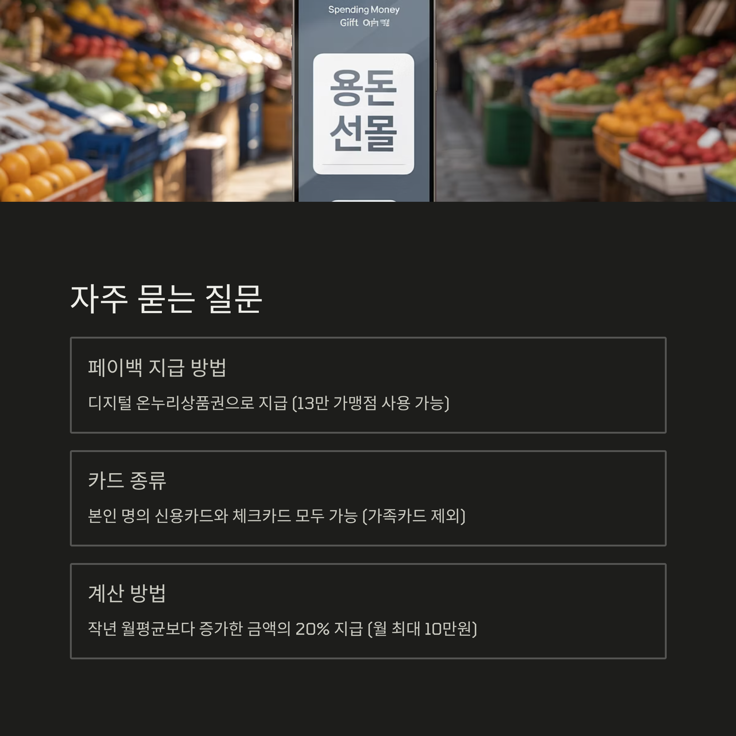 - 신청 방법: 상생페이백 누리집(상생페이백.kr)을 통한 온라인 신청 (온라인 신청이 어려울 경우, 전통시장 상인회, 소상공인지원센터, 은행 창구 방문)