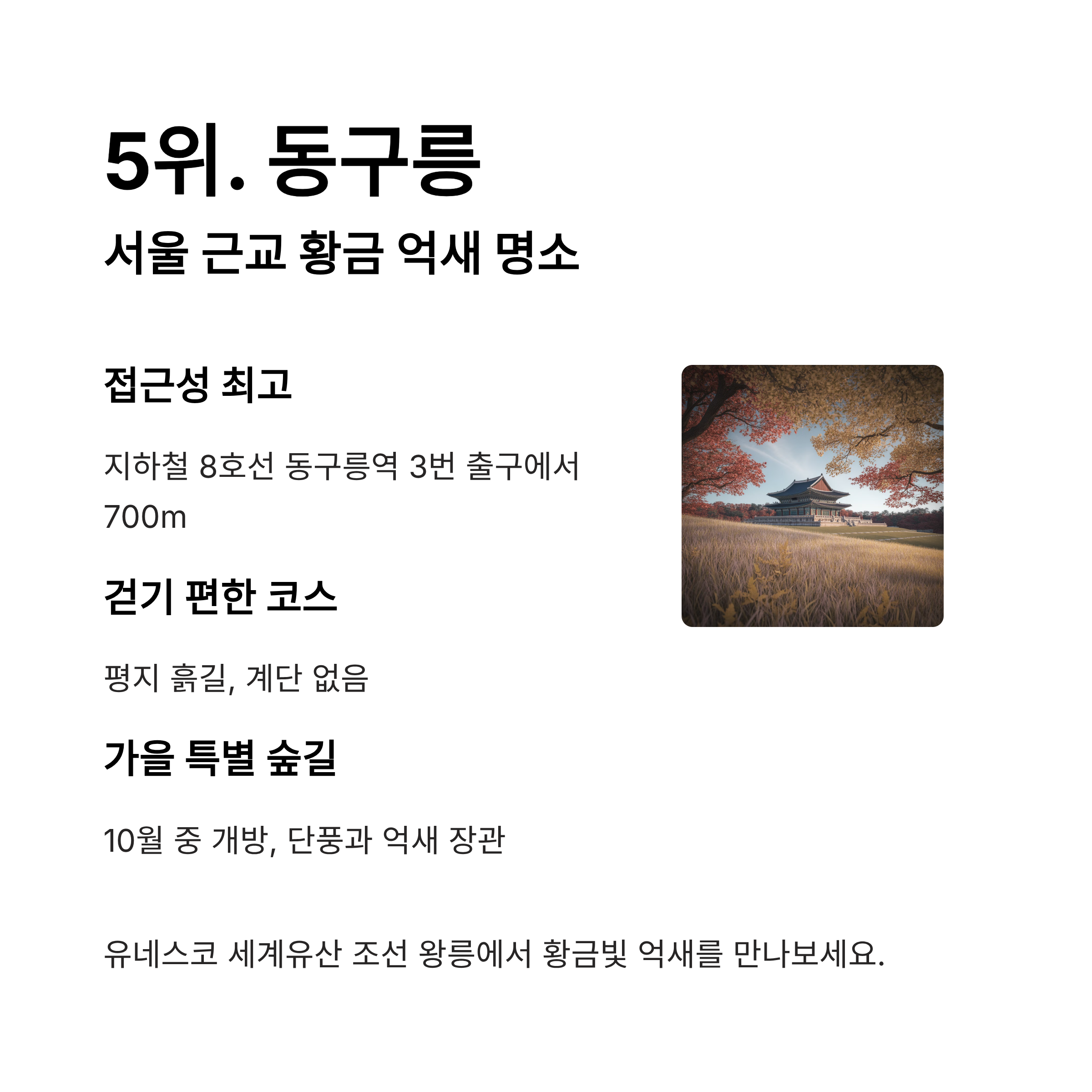 1. 서울 근교의 고즈넉한 보물! 왕릉에서 만나는 황금 억새 (5위. 동구릉)